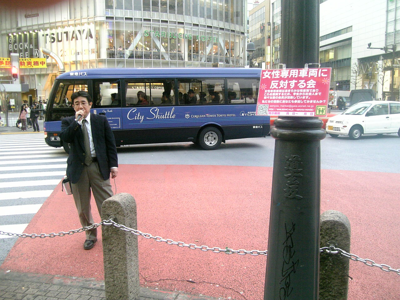 女性専用車両を糾弾する街頭演説も行ないました。以下はその様子です。